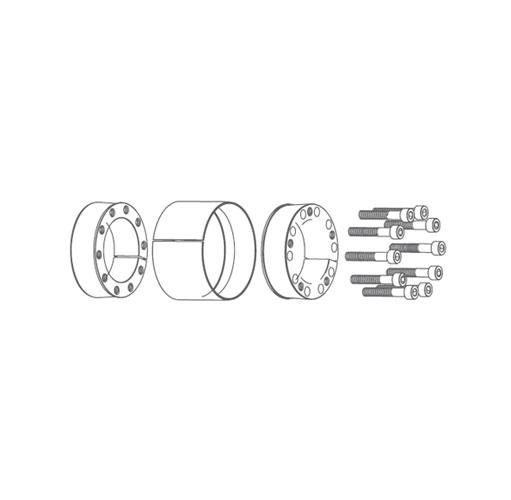 DX型脹套是D型脹套的改型,其尺寸系列相同,并且能夠做成更小的規(guī)格,同規(guī)格傳遞的扭矩和軸向力稍小于D型脹套。